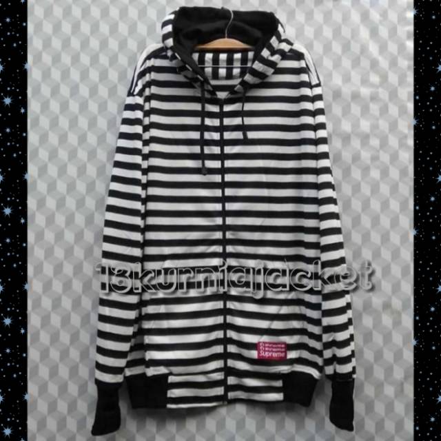 Jual Jaket Strip Supreme Hitam Putih T35 Shopee Indonesia